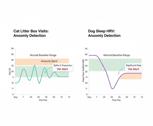 AI models learn each pet’s personal baseline—what’s normal for your dog or cat—then compare new data against that pattern to spot subtle drifts.