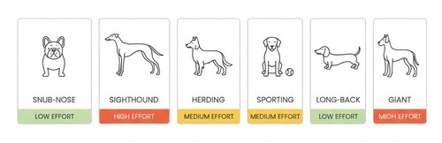 - Match the workout to the breed—structure sprints for sighthounds, low-heat routines for brachys, brain games for herders, low-impact for giants/hip-prone, and back-safe drills for long-backs.