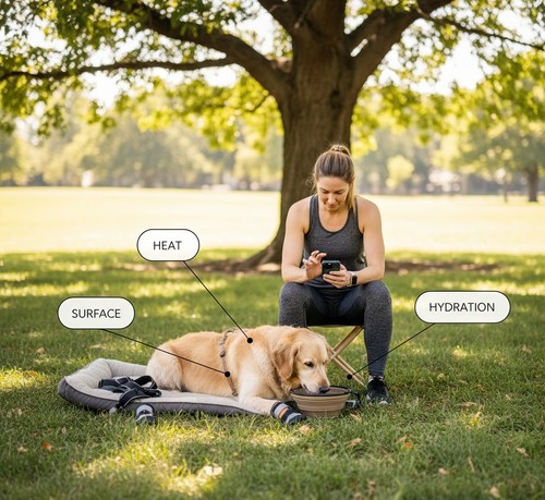 - Heat & humidity caution: Avoid midday heat; watch for heavy panting, wobbling, or collapse. Flat-faced breeds overheat faster.