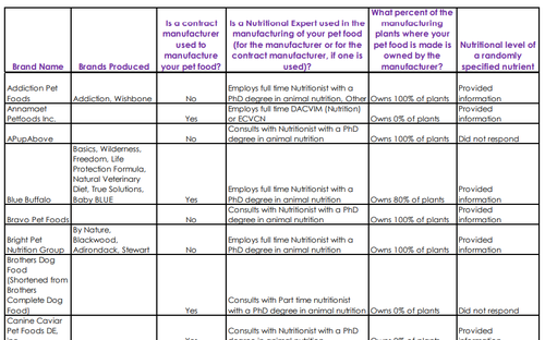 - Did not respond: Diamond Pet, Farmina, Freshpet, Stella & Chewy’s, Weruva.