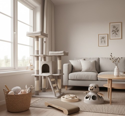 - Scratching Posts & Climb Space: Pair vertical options (tall, stable posts) with horizontal scratchers.