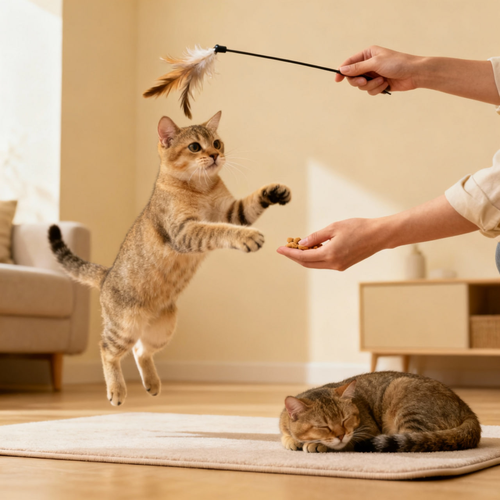 - Pick the right lure: Feather wands mimic birds; ribbon/cord toys mimic snakes. Rotate weekly.