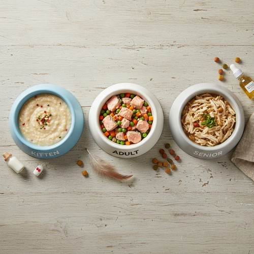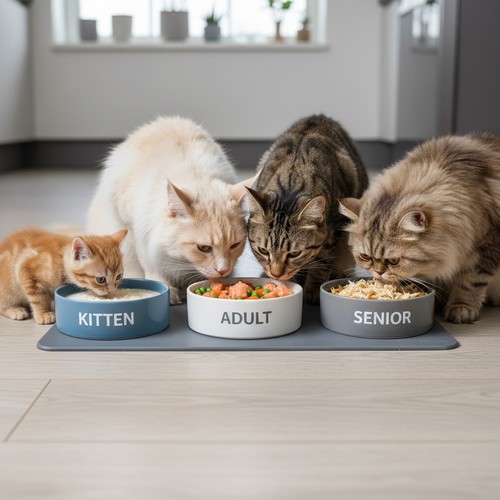 Older cats need lower-fat, joint-supportive, and easy-to-digest diets. Consider foods fortified with omega-3, glucosamine, and antioxidants.