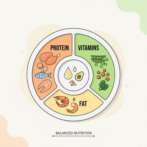 - Fat: Provides energy and helps absorb vitamins.